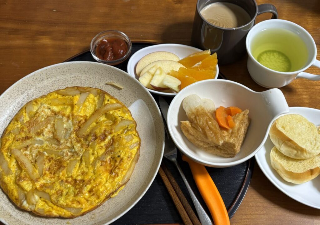 冷凍ポテトと卵で簡単オムレツにした。